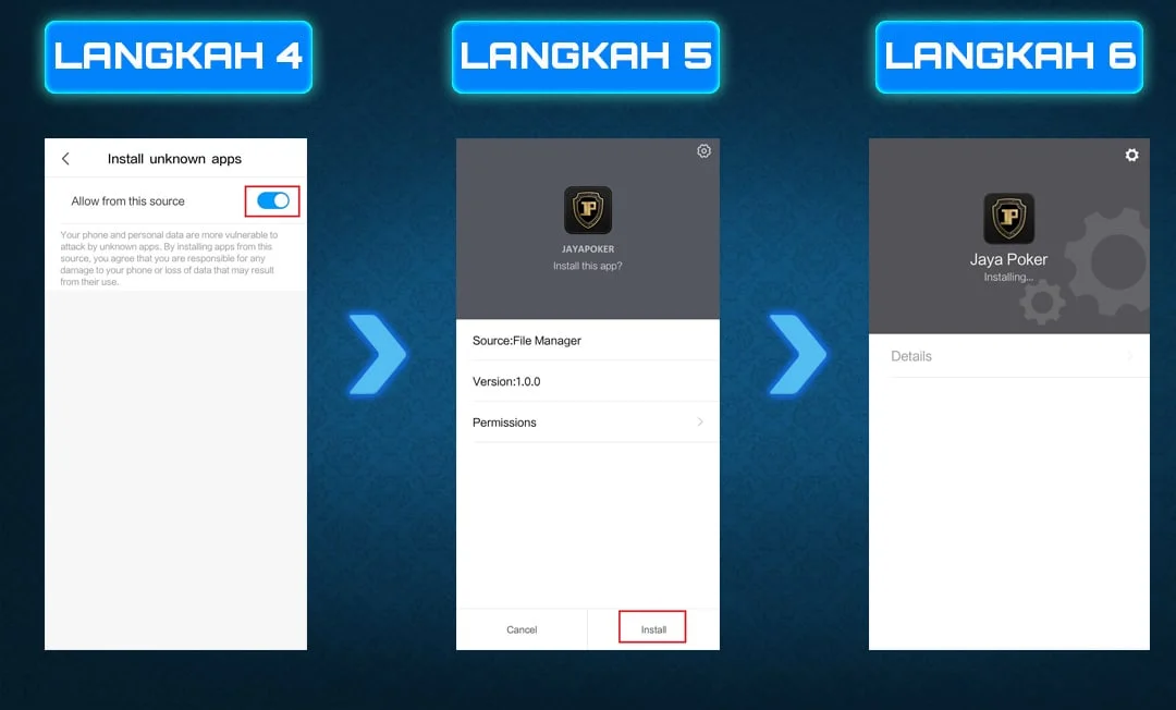 Untuk bermain melalui handphone android sangat mudah, anda hanya perlu download File APK ANDROID (Size 6.75 MB) yang telah tersedia.